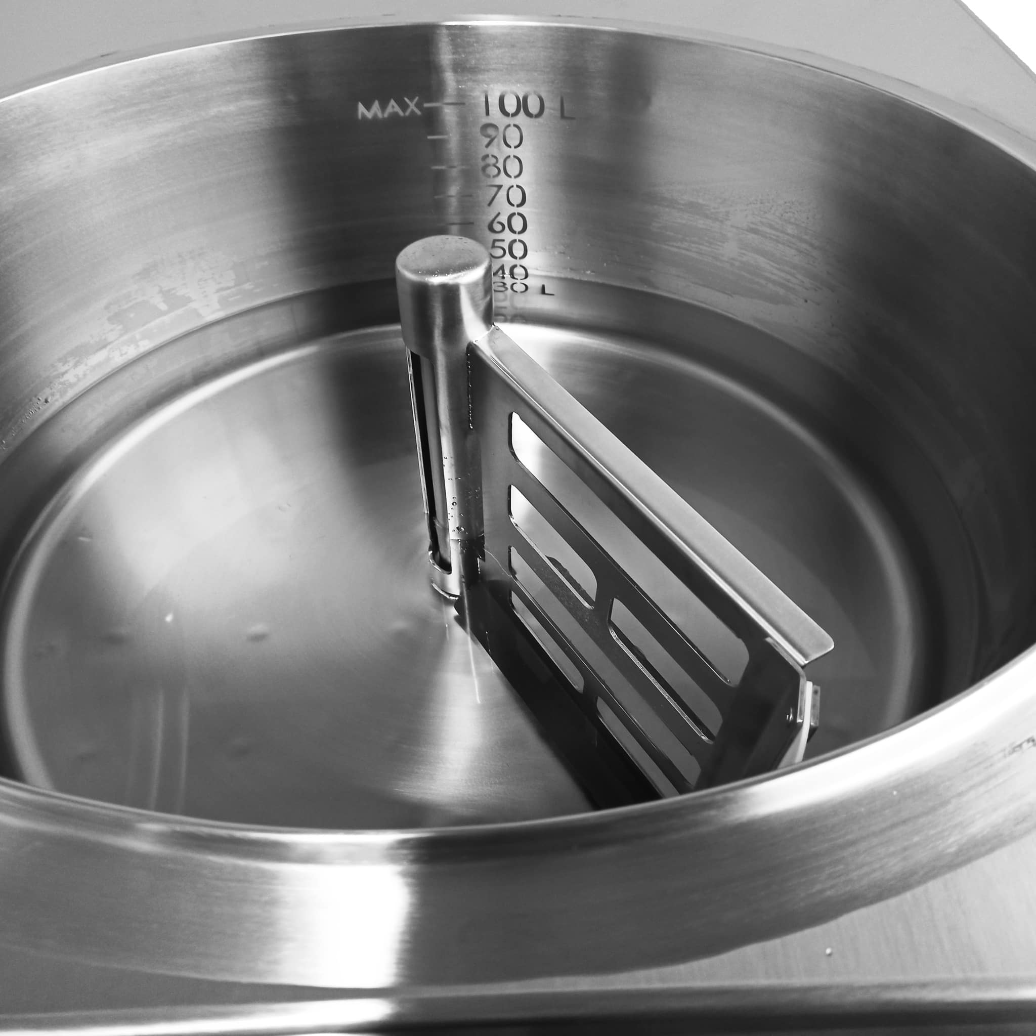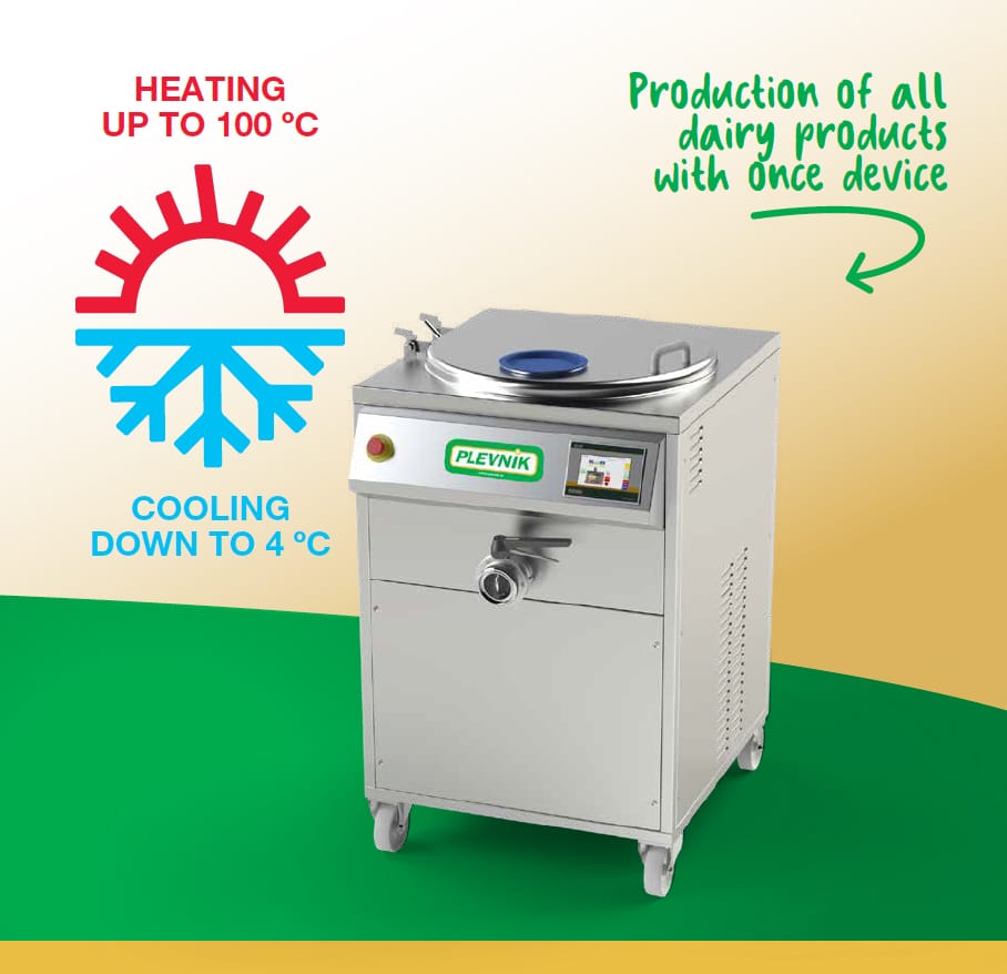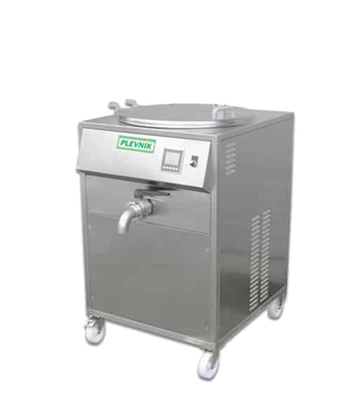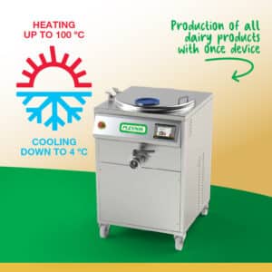 A small pasteurizer that is easy to use and guarantees the utmost hygiene. Heating and cooling are thermally transmitted directly through the walls of the tank, which is very economical and saves energy. The machine has two main functions: pasteurization and cold storage. The pasteurization programs heat the milk (max 100 degrees) and then cool it to 4 degrees. A signal informs when the cycle has finished. Then the ripening/preservation phase starts and the milk is kept at a constant temperature of 4 degrees. The agitator can be used all the time or in intervals.
