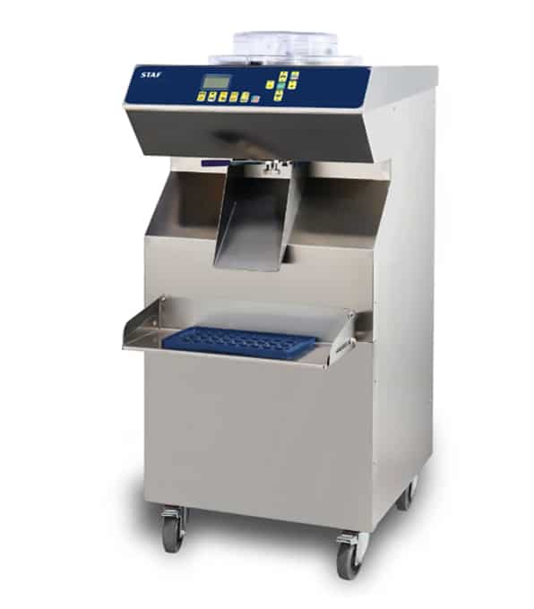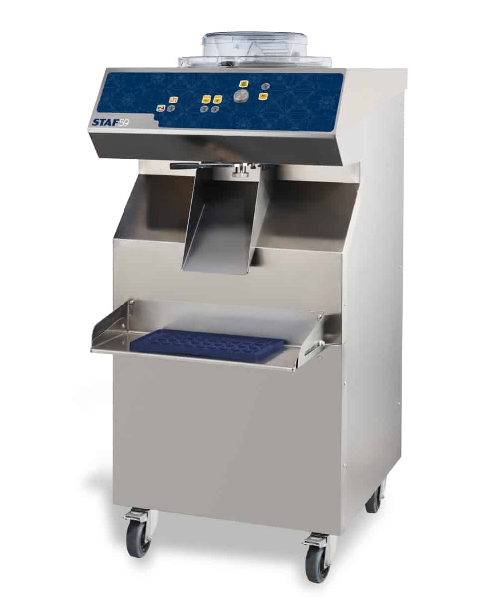 Italiensk hårdglassmasin med stor kapacitet och utrustad med den senaste tekniken. En skrapkniv med automatisk utmatning pressar ut glassen från botten av tanken för att spara tid under utmatningen. Delarna är enkla att demontera för rengöring och kan diskas i diskmaskin. Denna maskin passar bra till storskalig glasstillverkning. Vill man ha ännu större kapacitet är det BFX1000 som rekommenderas.